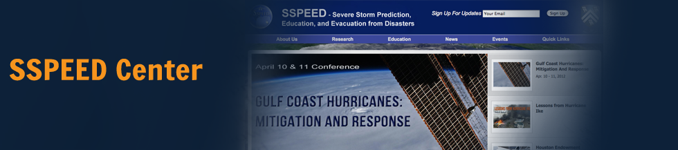 The SSPEED Center seeks to advance research and other scholarly activities which facilitates the creation and dissemination of knowledge, to better address severe storm impacts and evacuation strategies in the Gulf Coast area.